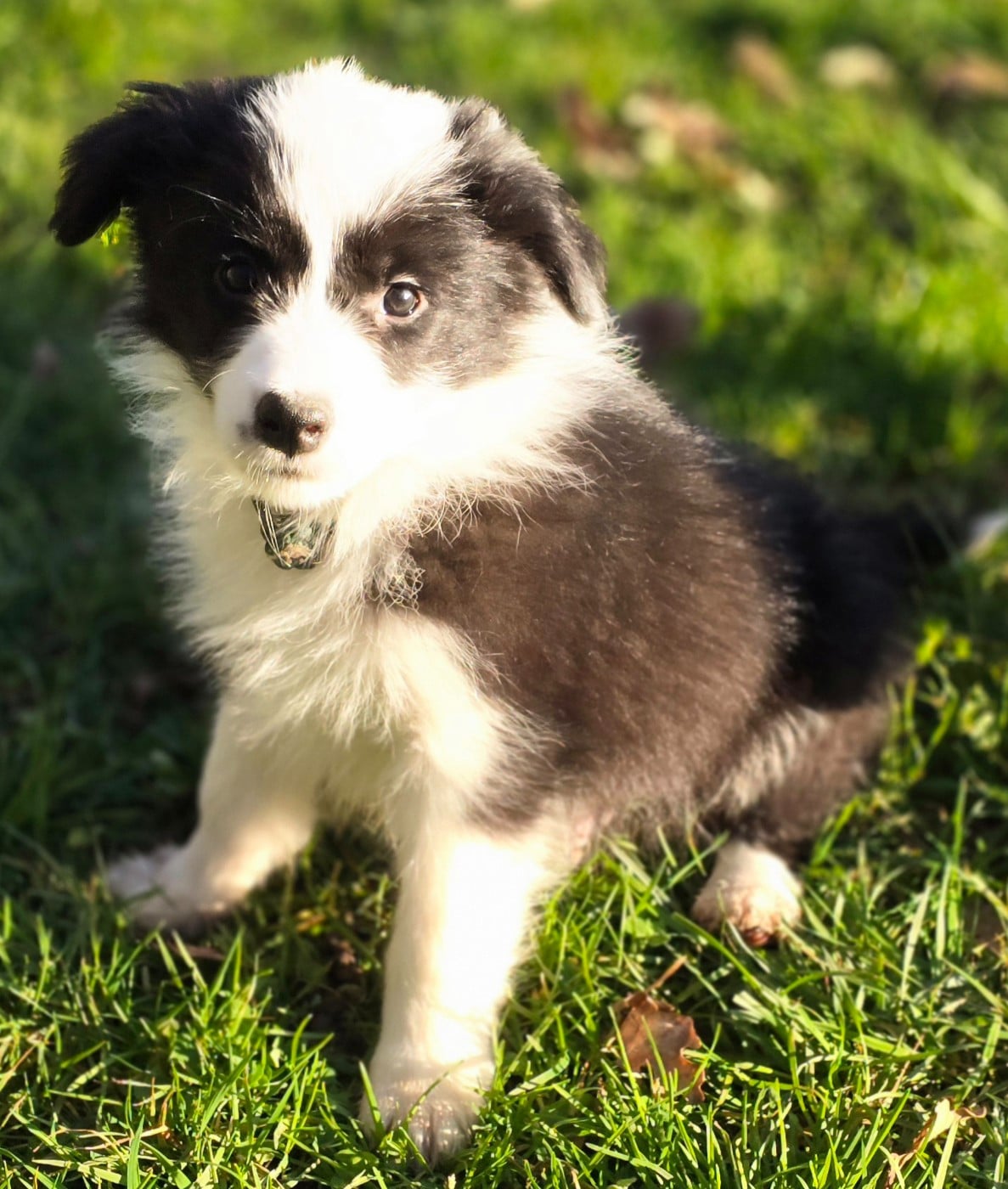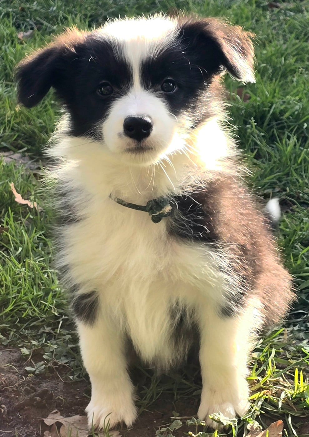 - Chiot mâle noir et blanc. Collier kaki.