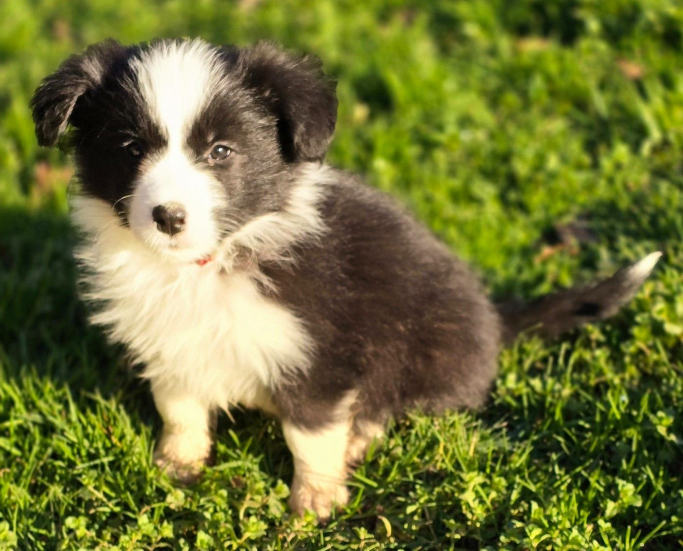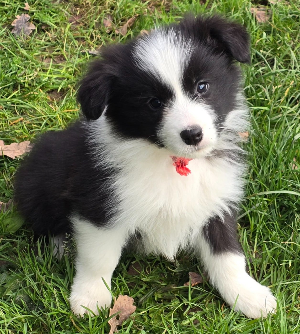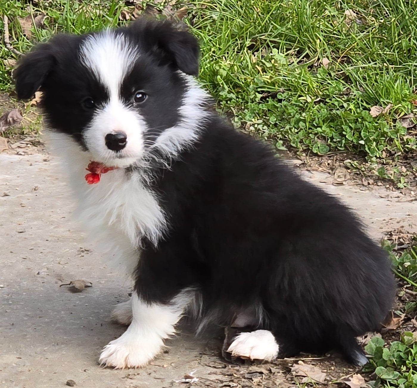 - Chiot mâle noir et blanc. Collier rouge.