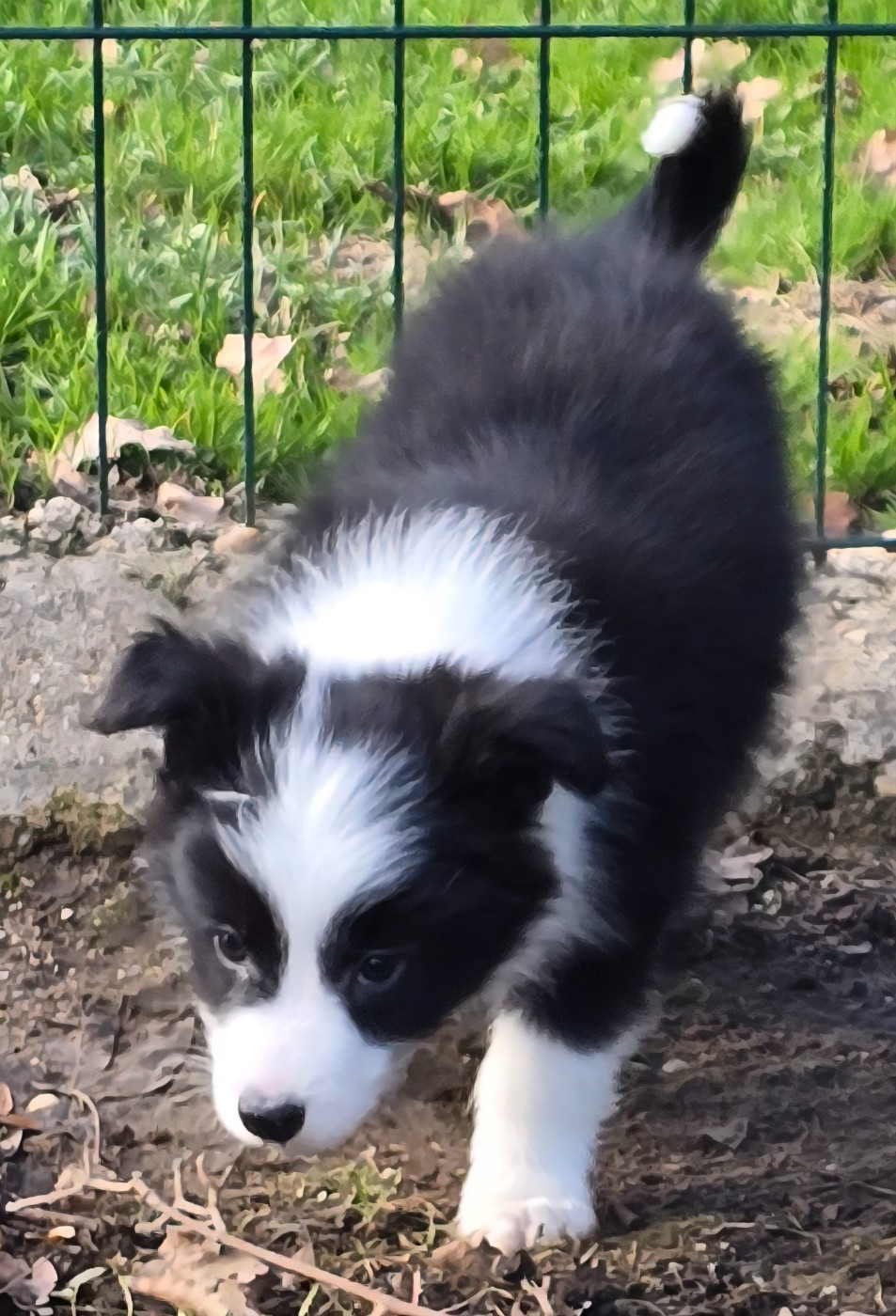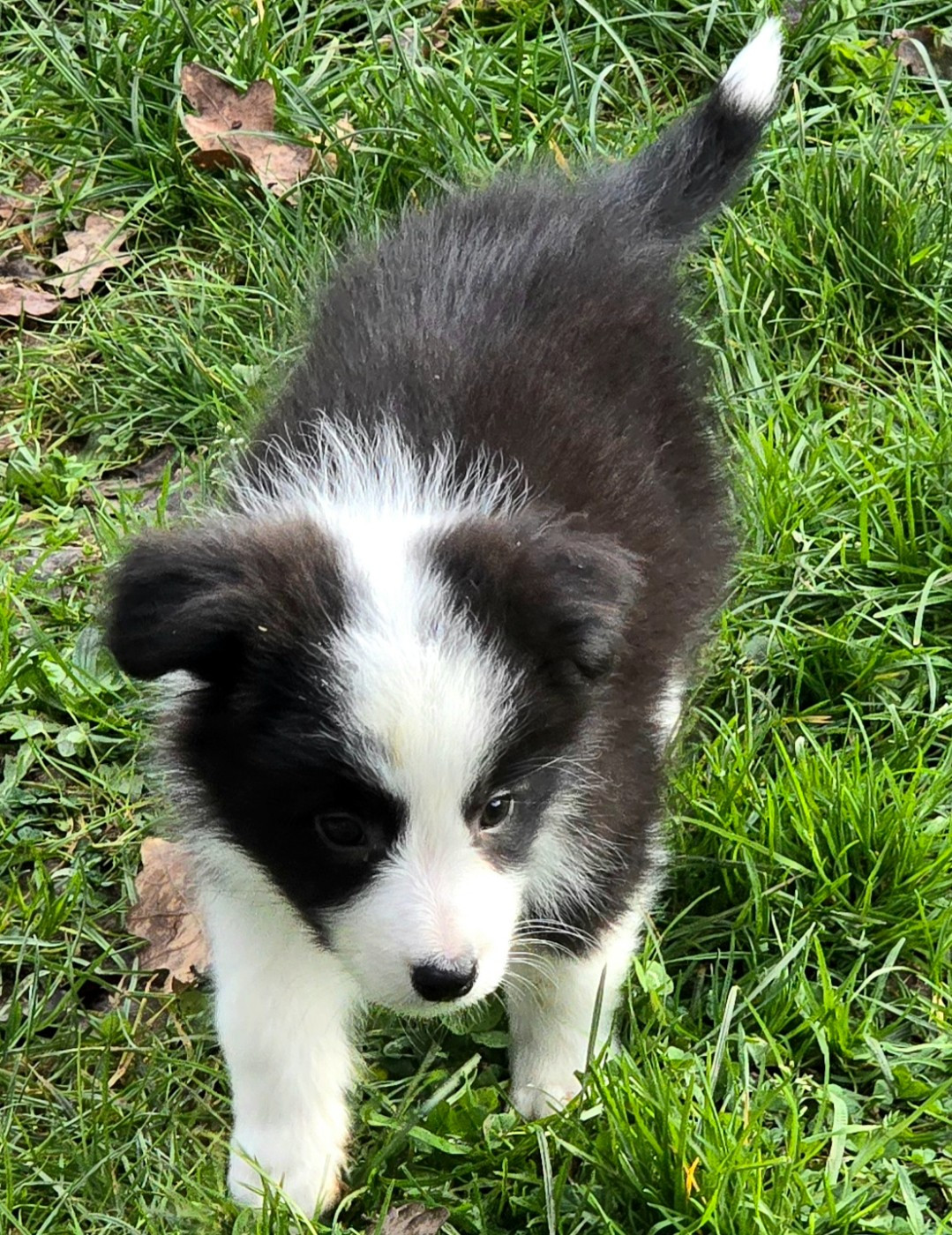 - Chiot mâle noir et blanc. Collier vert. - En observation pour un client jusqu'au 19 décembre.