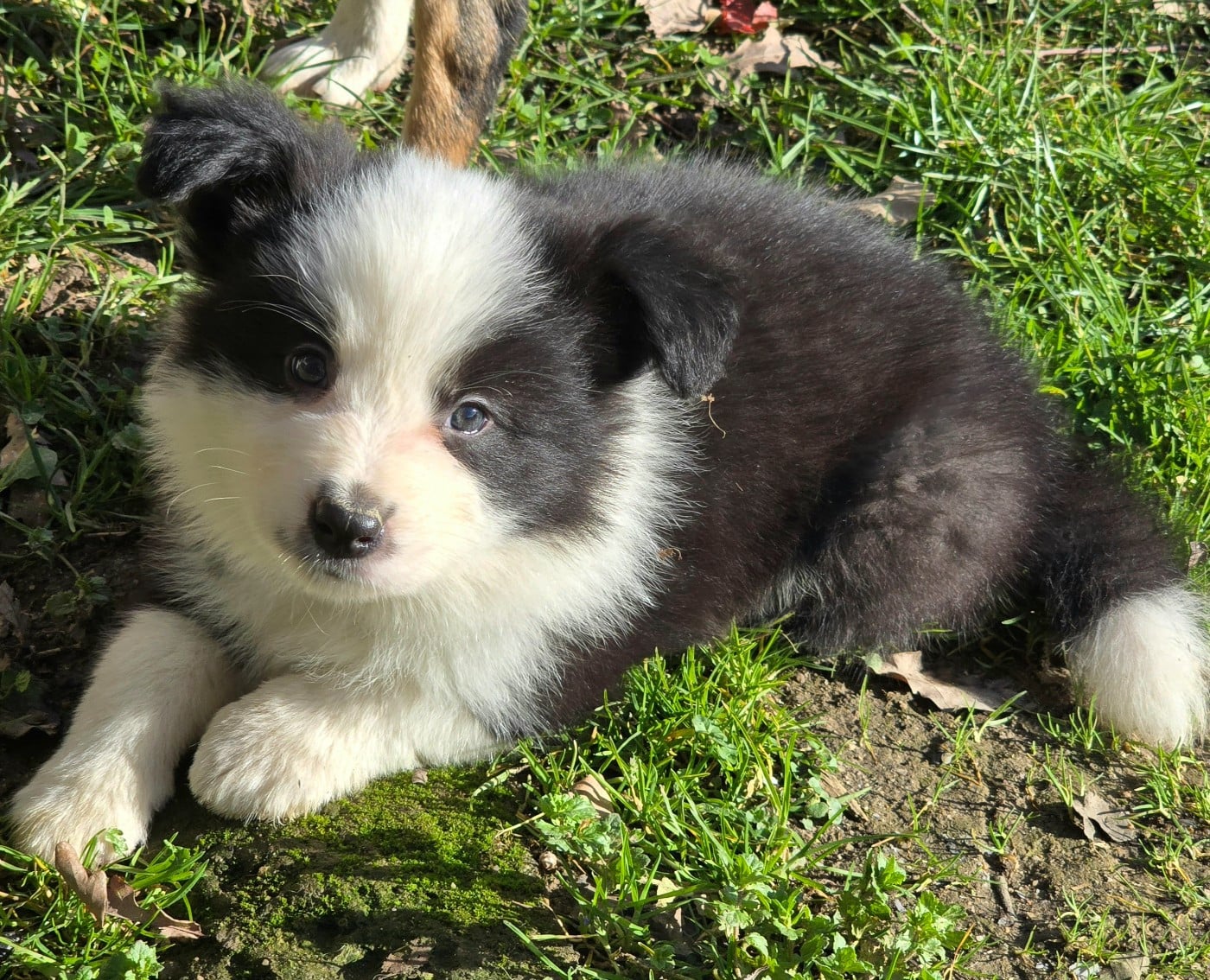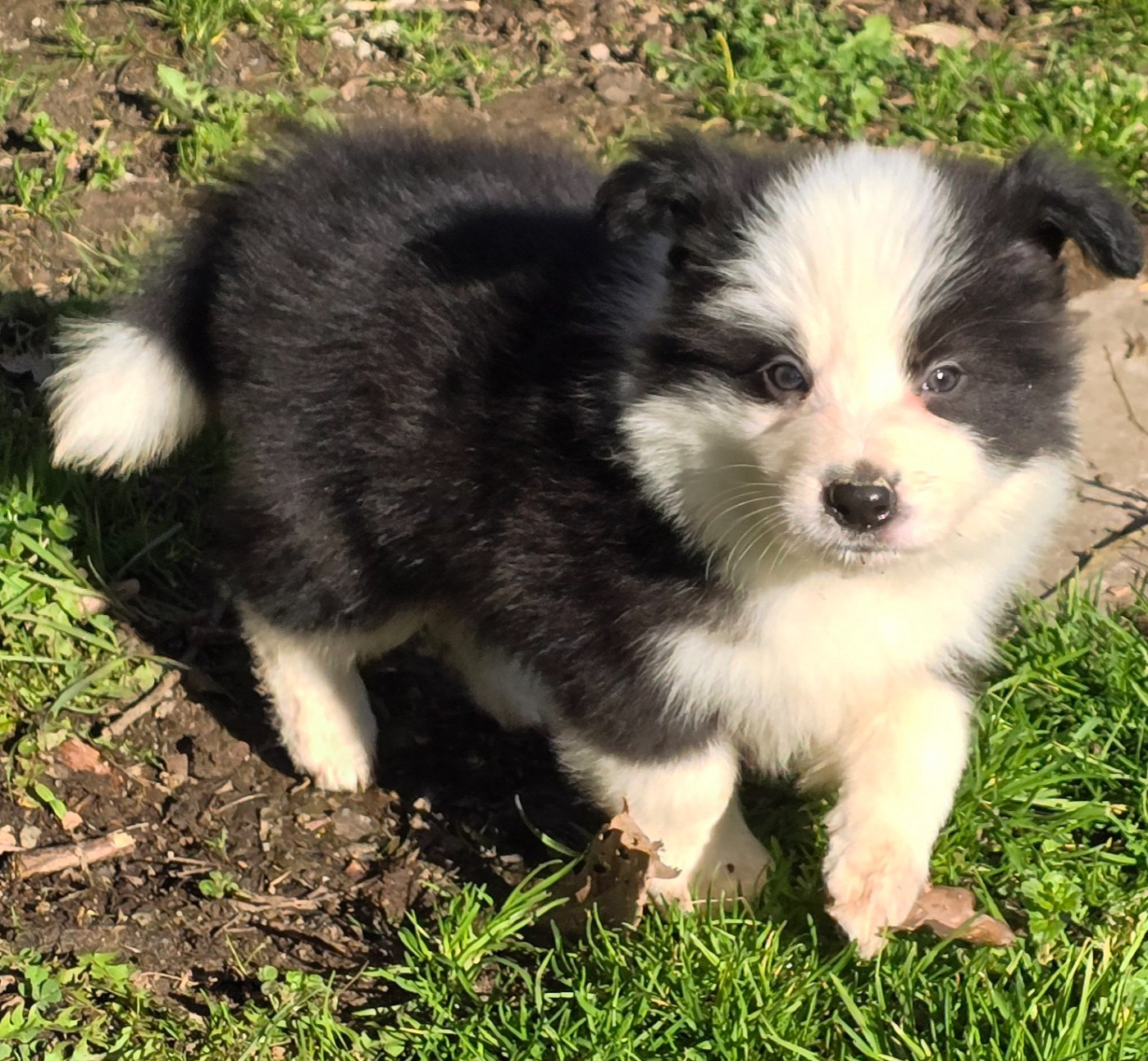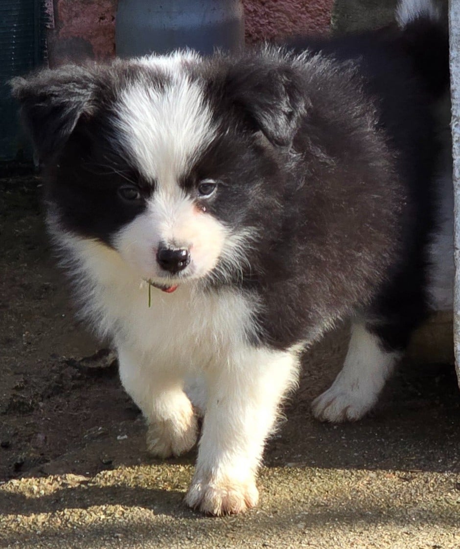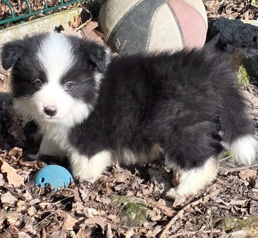 - * CHIOT MÂLE NOIR ET BLANC . * - Collier bleu turquoise.