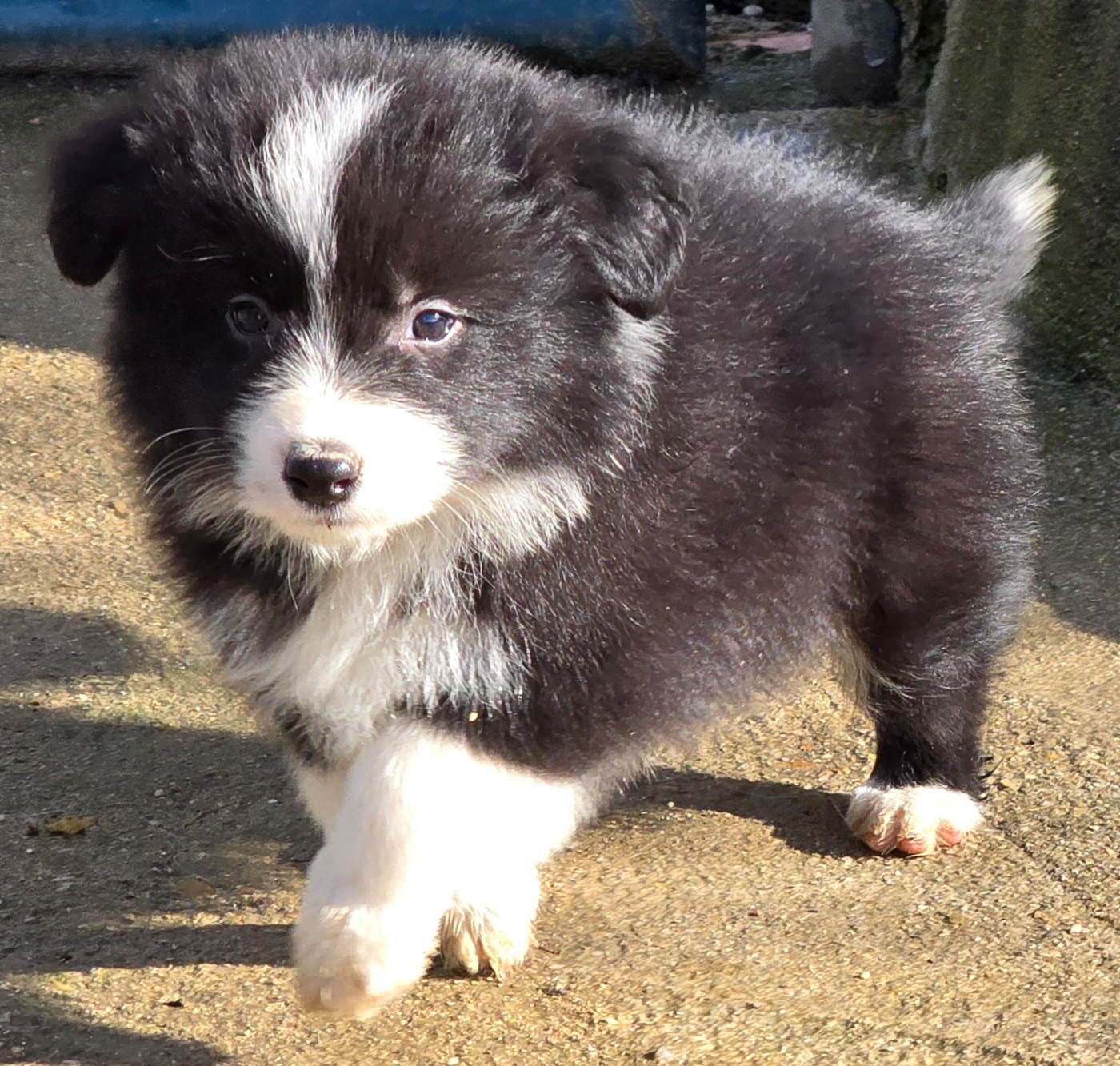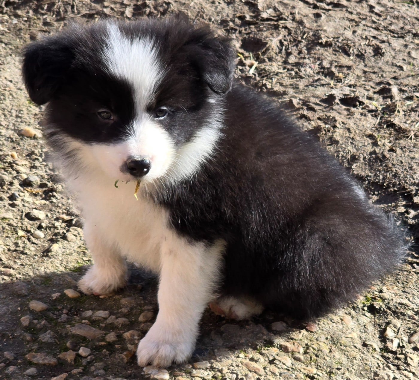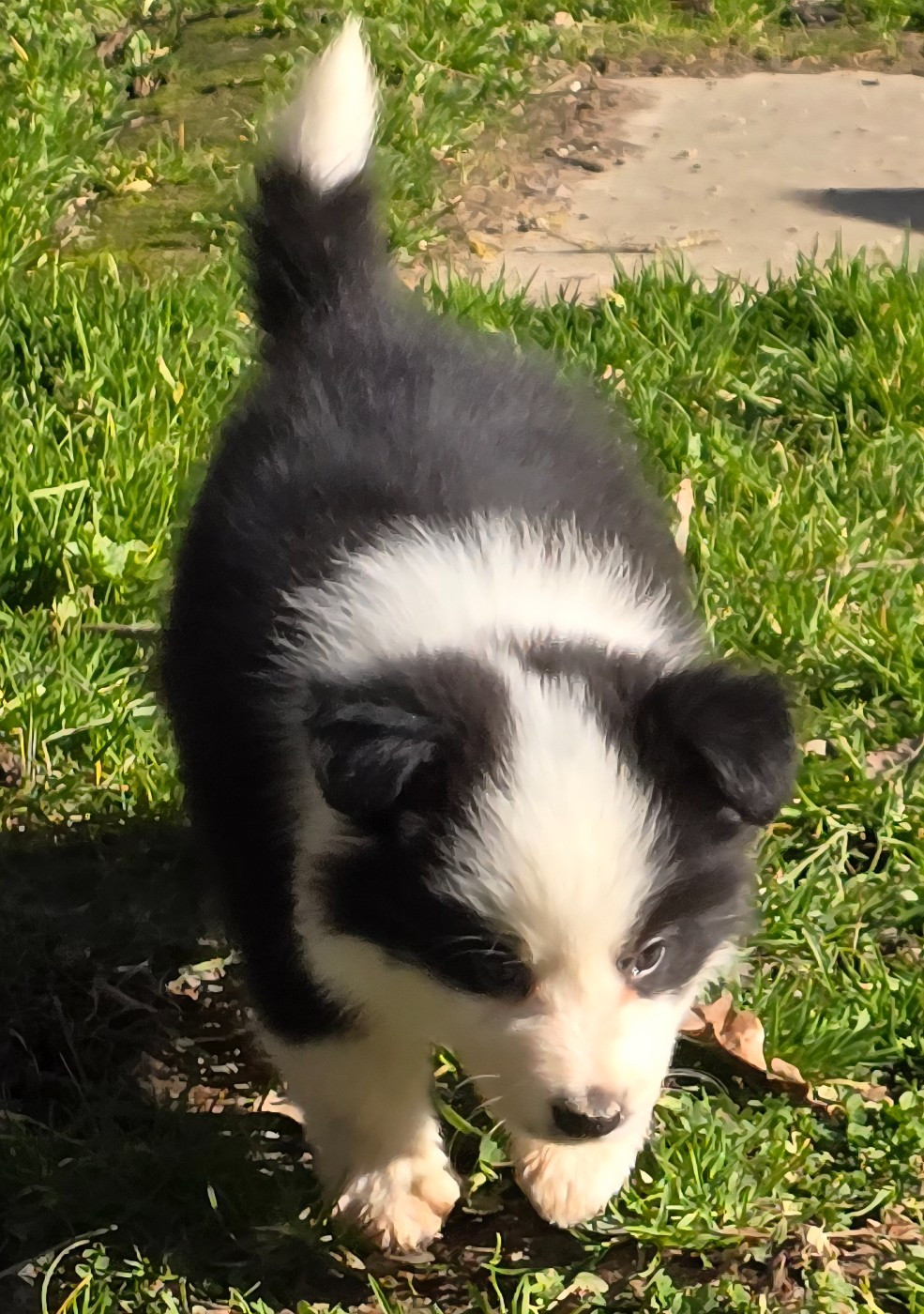 - * CHIOT MÂLE NOIR ET BLANC . * - Collier bleu turquoise.