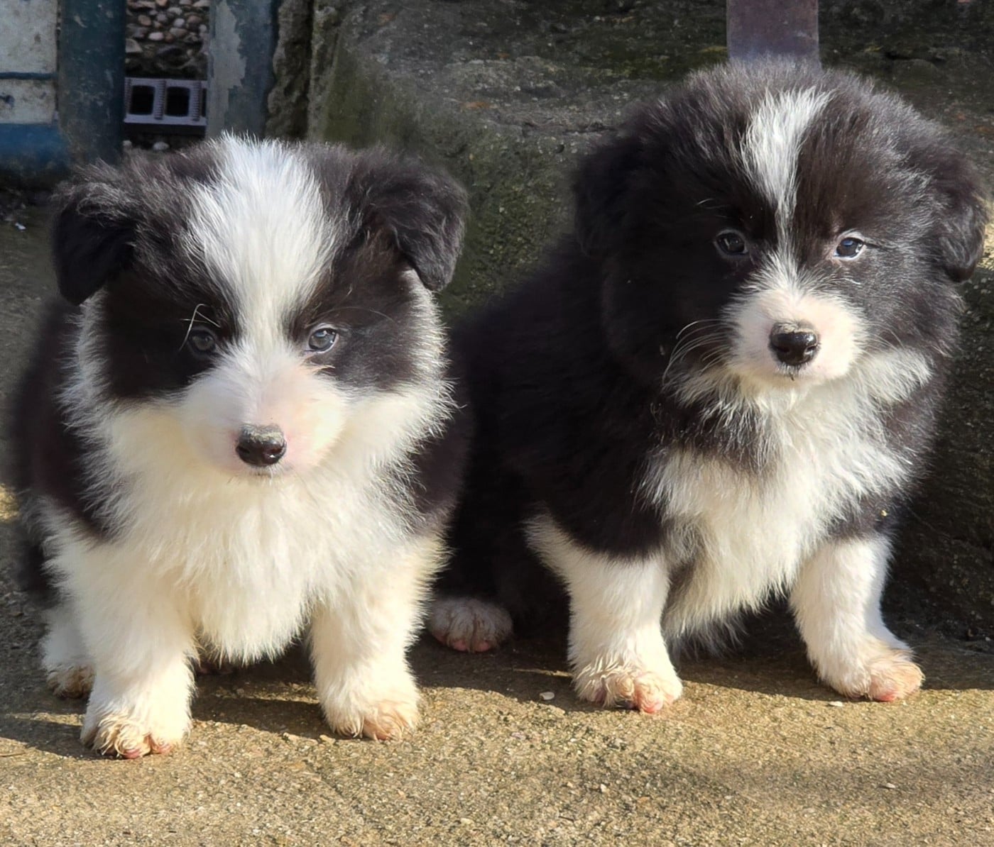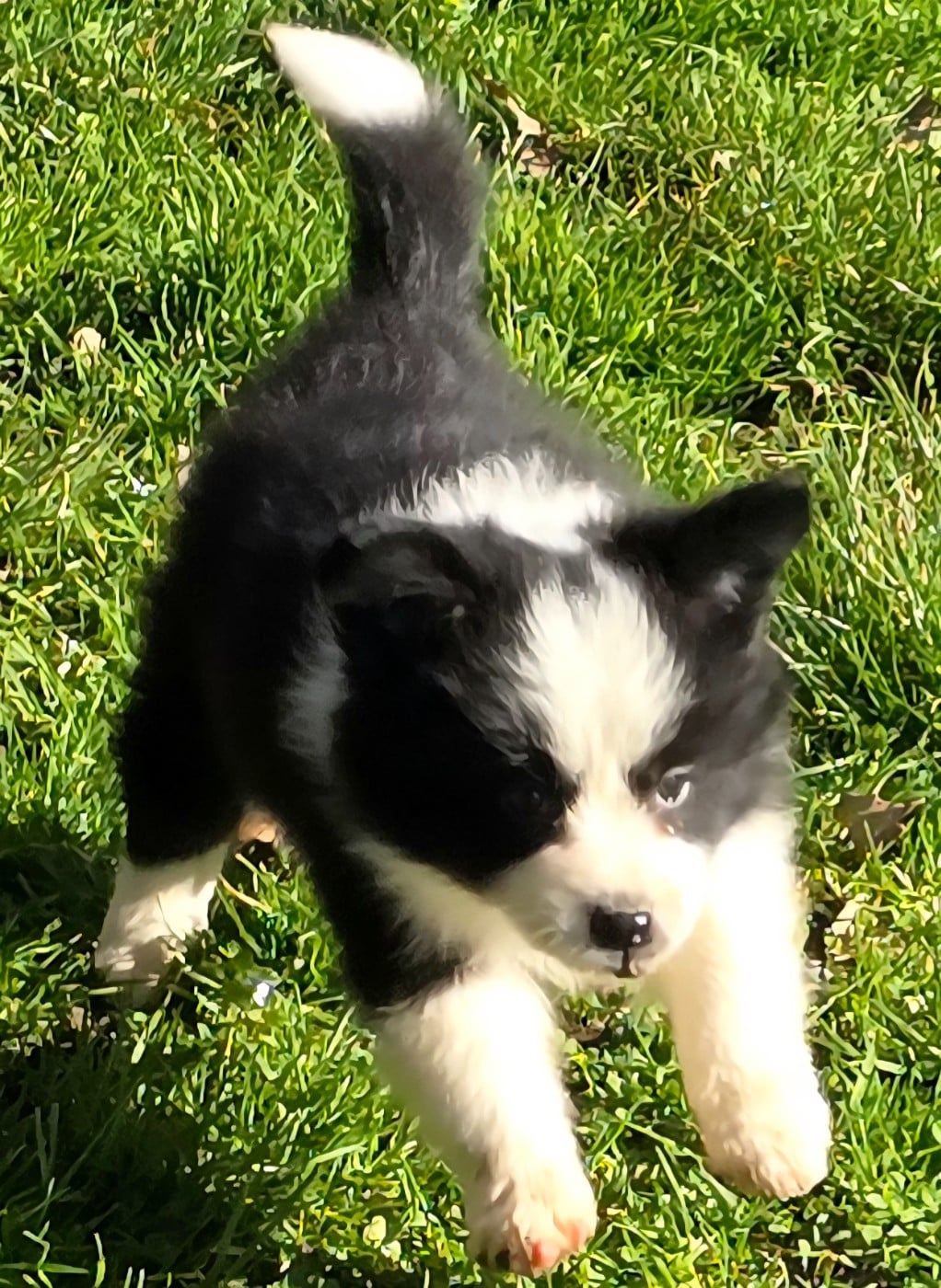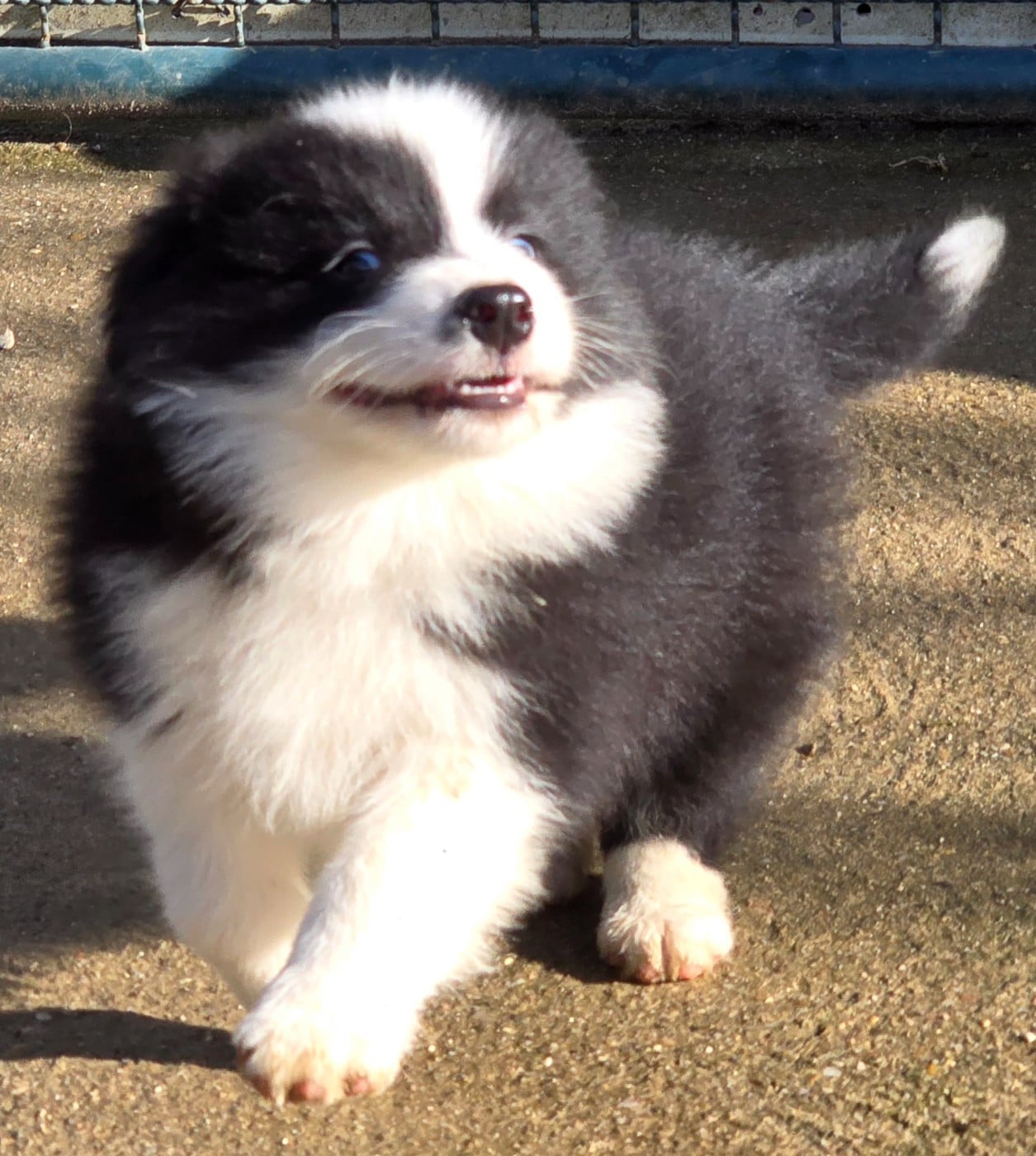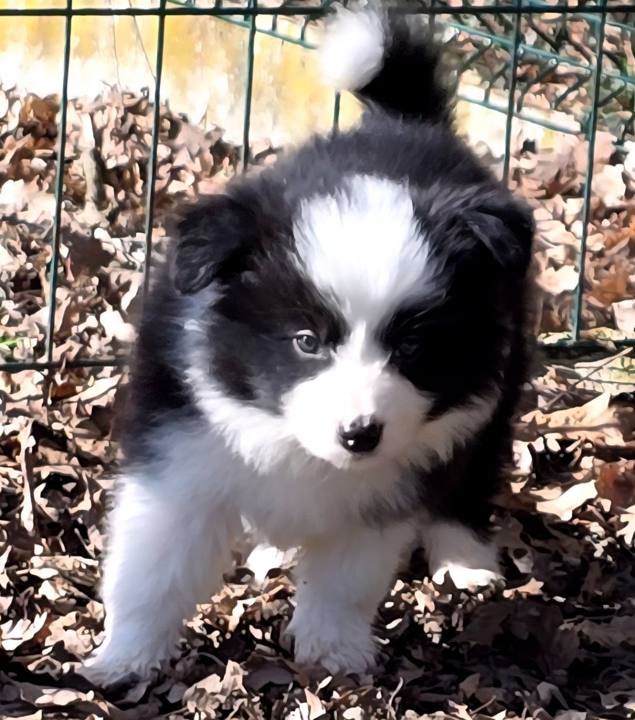 - * CHIOT MÂLE NOIR ET BLANC . * - Collier bleu turquoise.