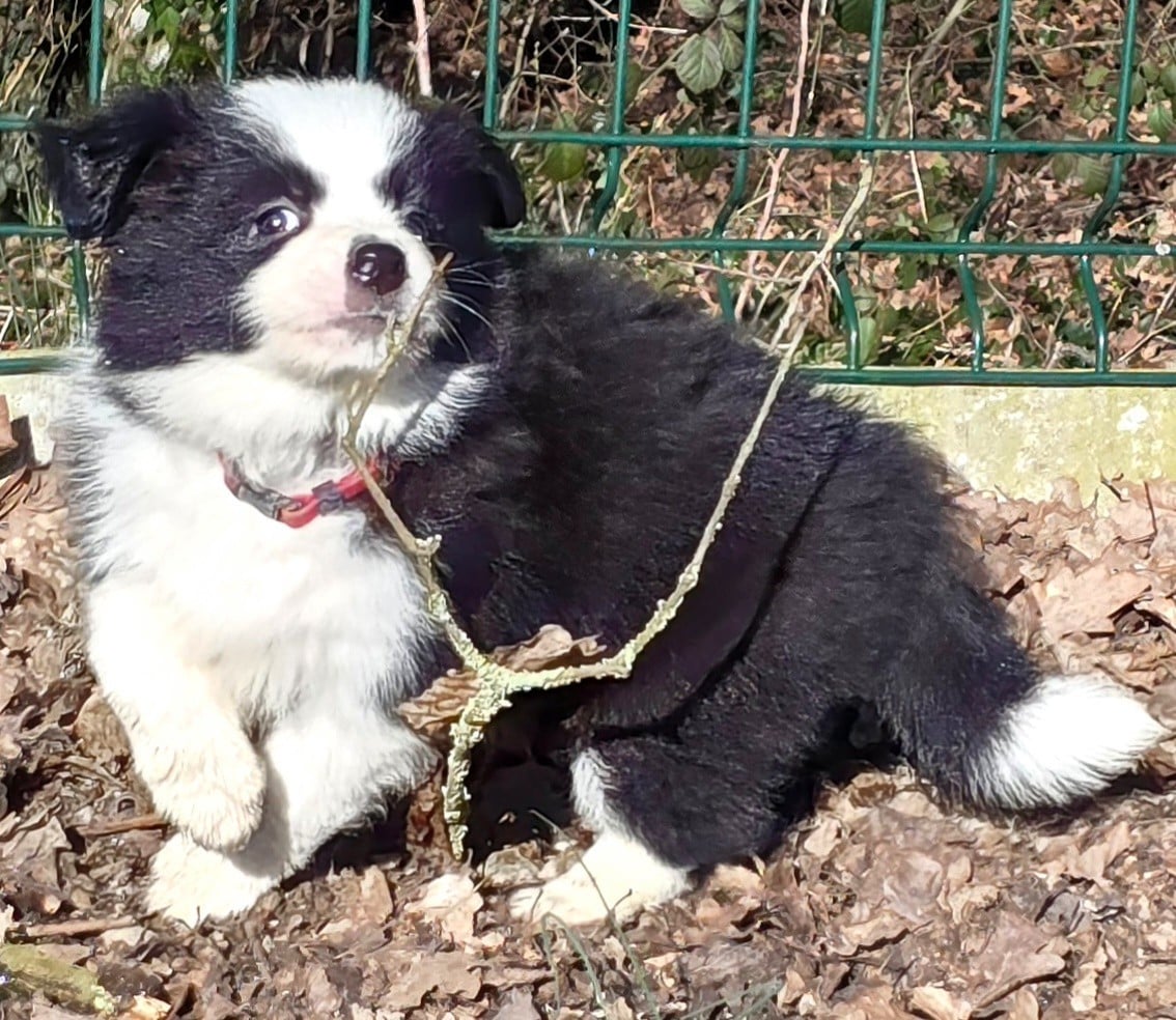 - * CHIOT MÂLE NOIR ET BLANC . * - Collier vert fluo.