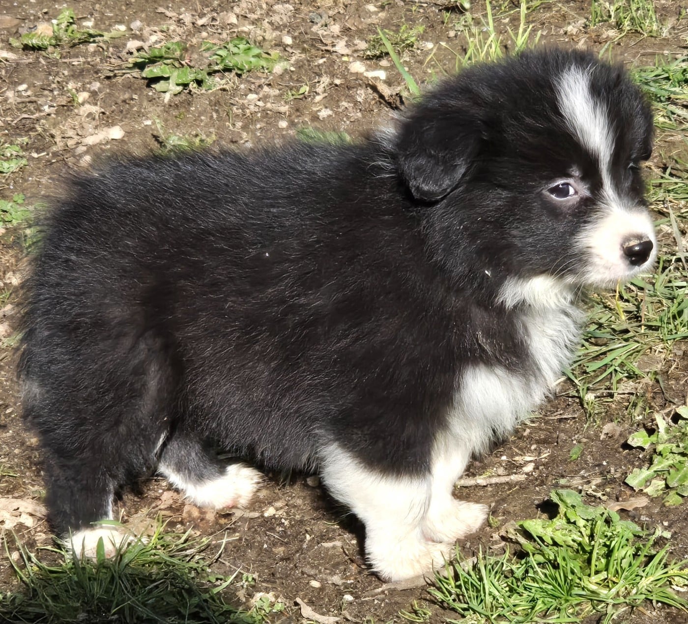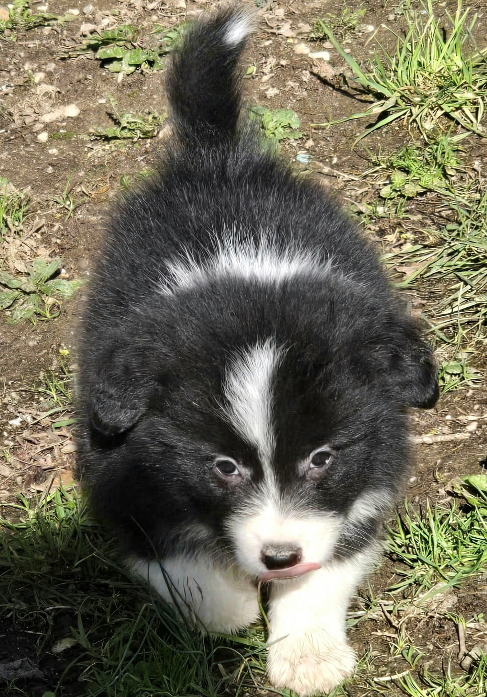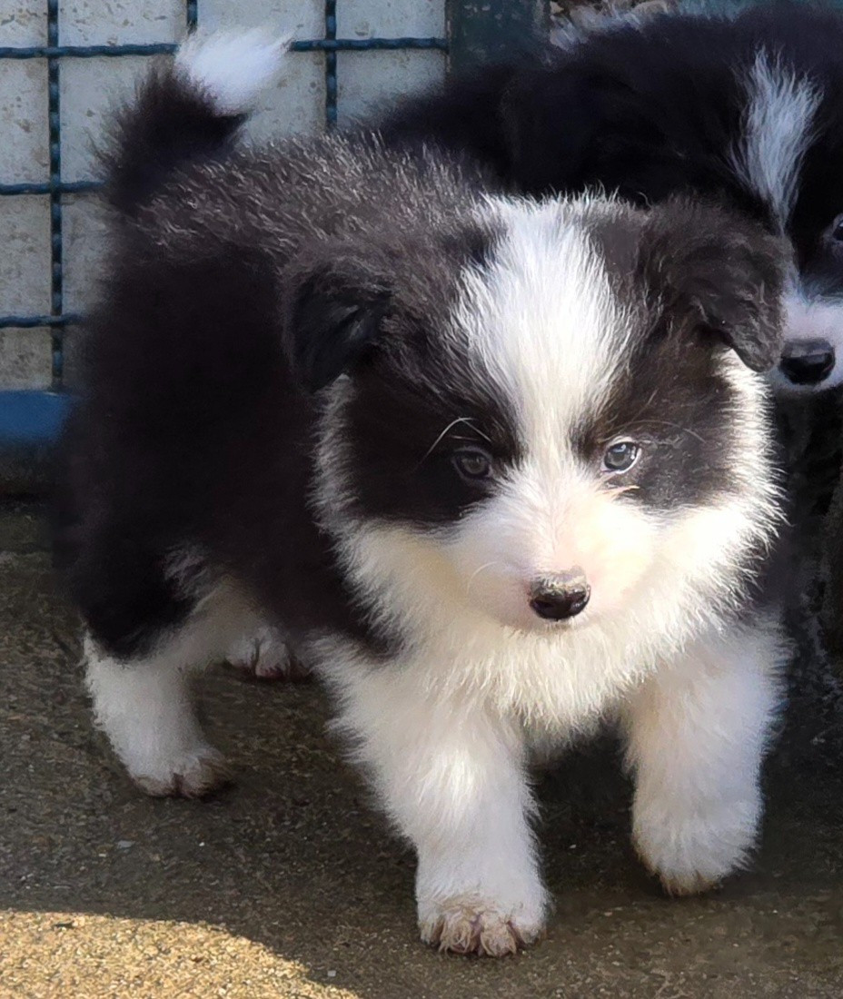 - * CHIOT MÂLE NOIR ET BLANC . * - Collier gris . - Pour infos : Prochaine naissance dans un mois si tout se passe bien.